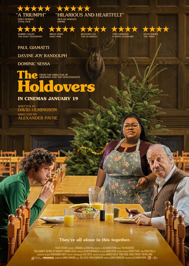 预科学校巴顿学院的老师保罗不太受欢迎,不管是学生、老师还是校长,都不太喜欢他,他们觉得他浮夸又僵化。在1970年的圣诞假期,保罗留在了学校监督无法回家的学生。几天后,只有一个学生留了下来——一个名叫安格斯的15岁捣蛋鬼,他是一个被不良行为破坏的好学生,总是在被开除的边缘试探。与保罗和安格斯一起留下的还有学校厨师长玛丽,一个为特权阶层的儿子们提供服务的非裔美国妇女,她自己的儿子最近在越南失踪了。这三个截然不同的失意者组成了一个奇怪的圣诞家庭,在新英格兰大雪纷飞的两个星期里,分享着不幸经历,并意识到他们中没有人感谢自己的过去。