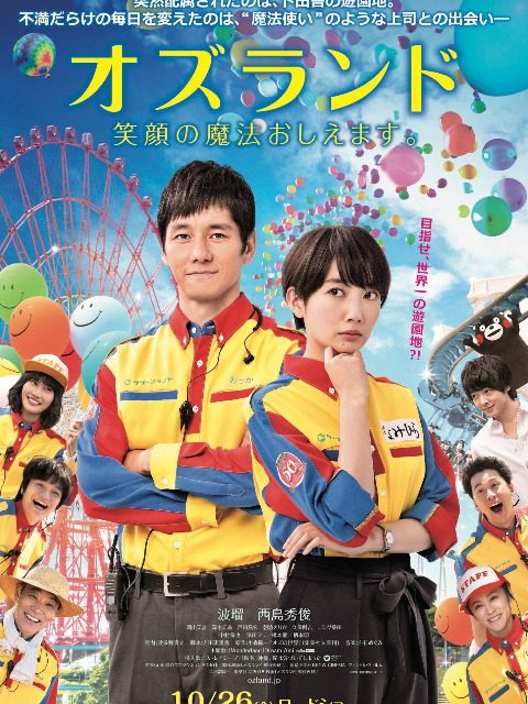 波瑠及西岛秀俊共演《仙踪乐园》(オズランド 笑顔の魔法おしえます。)公开预告片,内容以主角波平久瑠美(波瑠)收到大公司内定开始,以为和男友小西俊郎(中村伦也)一起在饭店工作,不料要到偏远的游乐园上班。rn在那里她遇上了被称为「魔法使」的天才上司小冢庆彦(西岛秀俊),最初她被小冢安排拾垃圾及当查询员,让她感到失落,在小冢的叱咤下,她屡败屡战渐渐得到成绩,更找到在游乐园工作上的快乐,更让好感受到新的恋情……
