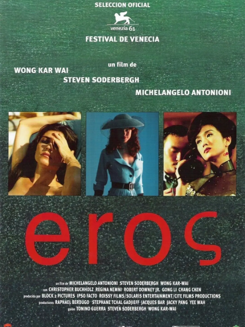本片为王家卫执导的《手》部分。该片是一部三段式主题(爱和性)电影,由米开朗基罗•安东尼奥尼(《危险临界点》)、史蒂文•索德伯格(《平衡》)和王家卫(《手》)三位导演联合执导。《手》讲的是1960年代的香港,年轻的裁缝(张震)多年不计回报地爱着交际花华小姐(巩俐)的故事,影像华丽,充满了质感又略带伤感。《平衡》的故事发生在1950年代的纽约,广告人尼克•彭罗斯(罗伯特•唐尼)总是被春梦困扰,只得向他的心理医生珀尔(阿兰•阿金)求助,基调虽荒谬反常,却也可看成颇有自嘲意味的幽默喜剧。《危险临界线》则仍是安东尼奥尼一向关注的现代社会中的男女关系主题,哲学味道浓烈。