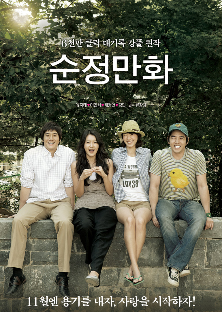 《纯情漫画》改编自人气网络漫画家姜草的同名作品。rn30岁的公司职员金延寿(刘智泰 饰)每天上班乘地铁时总会遇见和自己抢位置的女高中生秀颖(李妍熙 饰),两人慢慢开始留意对方。一次秀颖上学时忘记系领带,便向延寿临时借了领带,两人的心因此慢慢地靠近。而因为进修同样的课程,24岁的孰(金英云 饰)喜欢上了比自己年长5岁的夏京(蔡贞安 饰),面对孰的爱情告白,有着悲伤爱情回忆的夏京婉拒了,在孰的努力下,夏京开始慢慢敞开心扉。然而因为年龄的差距,秀颖的母亲介入了这段恋情,而孰也因为夏京放不开原来的恋情而感到受伤。两段恋情都陷入了危机之中……rn那么这两段两段纯情之恋是否能在这个夏末秋初的午后继续上演呢?
